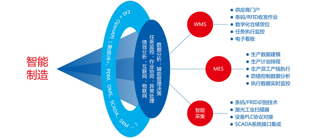 智能制造不但要生产自动化、信息化,更需跨业务层级整合信息系统,实现业务层、执行层、监控层、设备层的互联互通。MES系统是链接业务层与设备监控层的桥梁,通过MES可以实时掌控生产进度与监控异常。